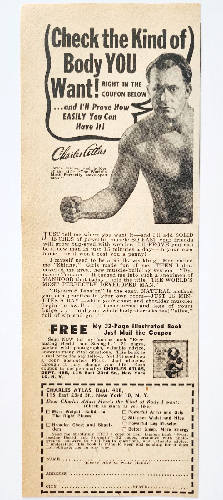 - 1954 Charles Atlas Bodybuilding Advertisement Muscle Fitness Vintage DWF27