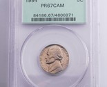 1954 Jefferson Nickel 5 Grade by PCGS PR 67 Cameo Green Vintage Holder!