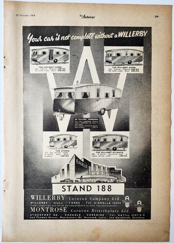 1954 Willerby Caravan Co Earls Court Motor Show Advertisement Automobilia DWPP9