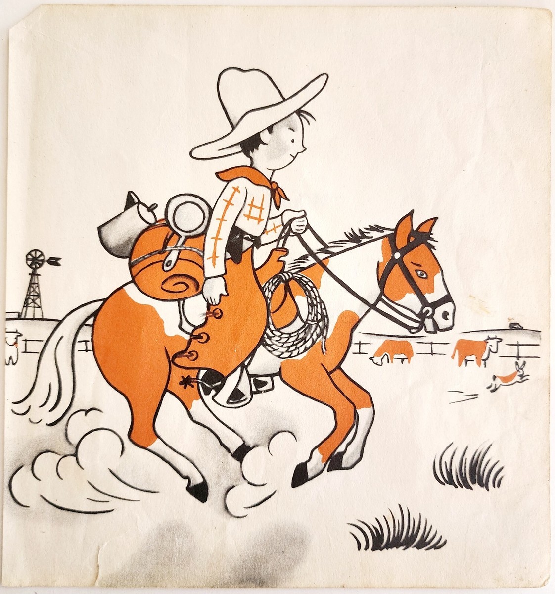 - 1955 Cowboy Small Horse Book Page Illustration Plate Print Lenski Vintage DWH5B