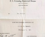 1955 Crosby Funeral Home Invoice Martin Lowell Antique Ephemera Receipt E83E