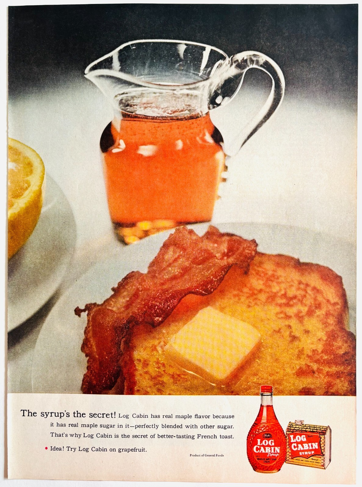 - 1955 Log Cabin Pancake Syrup Advertisement Vintage Breakfast Condiments DWYY5