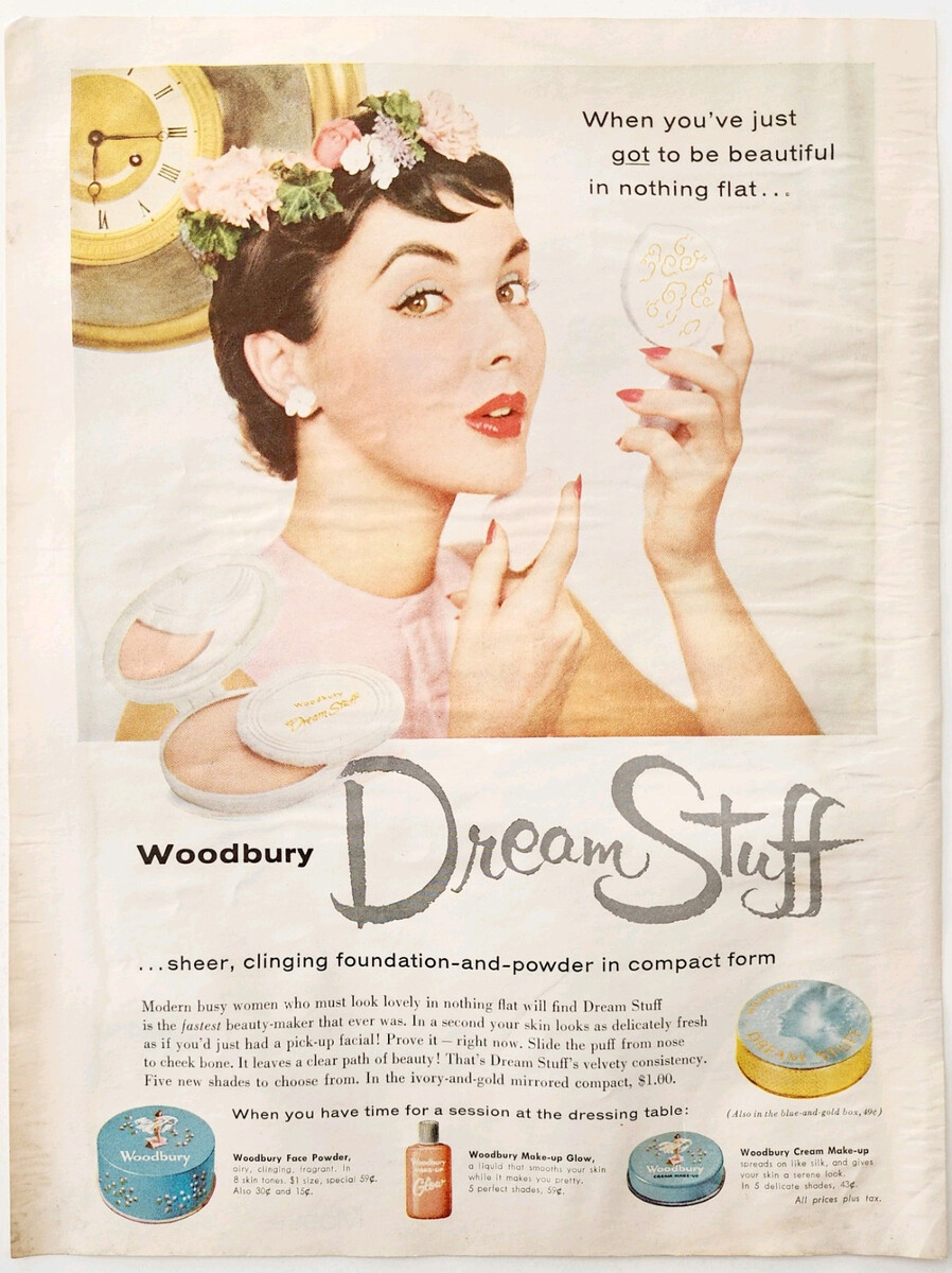 - 1955 Woodbury Dream Stuff Foundation Advertisement Beauty Cosmetic Vintage DWQQ8