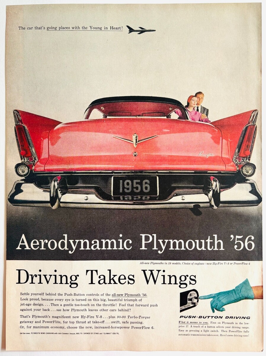 - 1956 Plymouth PowerFlite V8 Advertisement Vintage Automobilia Car DWYY5