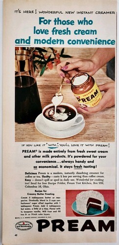 - 1956 Pream Dairy Coffee Creamer Advertisement Drink Mix Frosting Recipe DWPP24