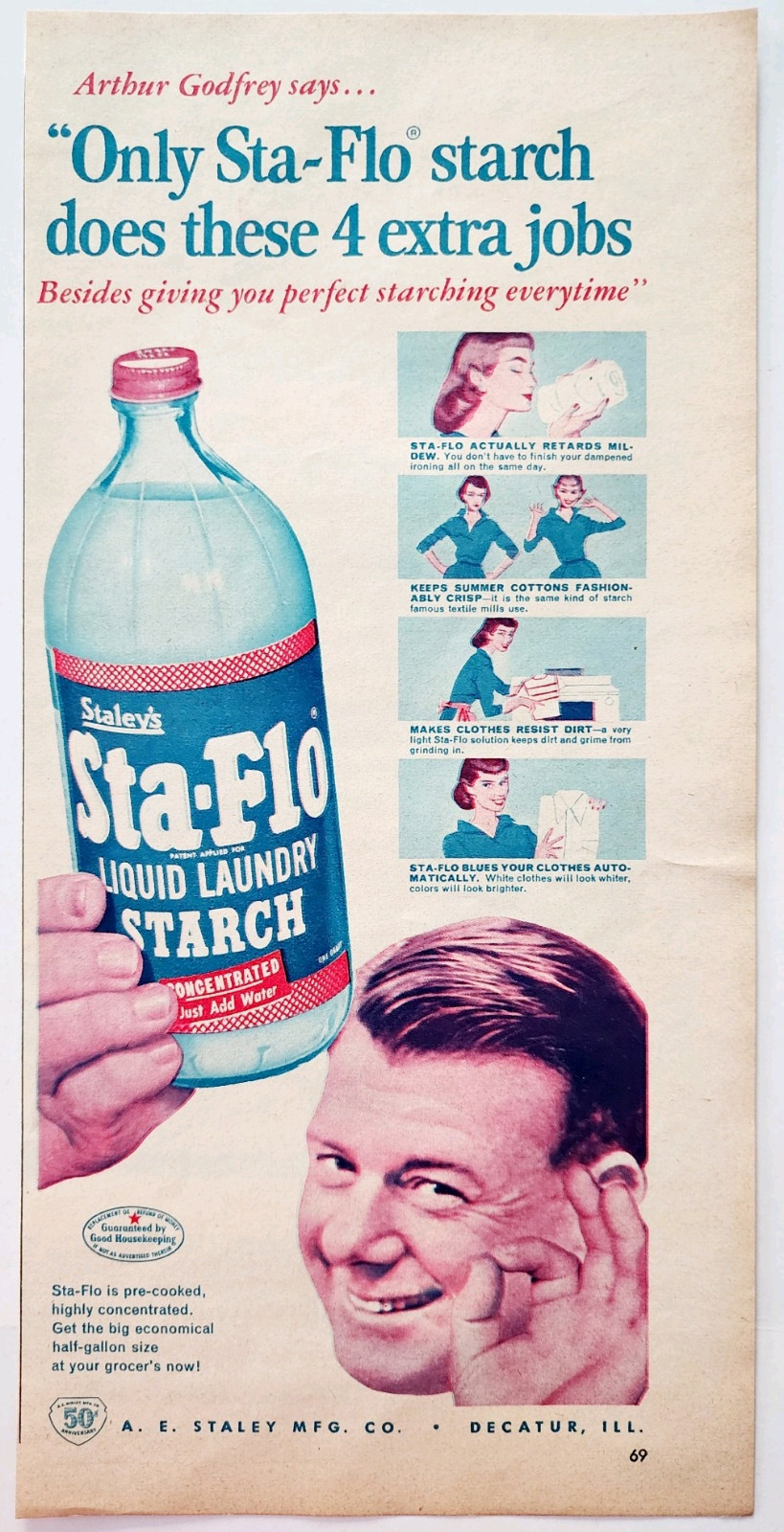 1956 Staley Sta Flo Liquid Starch Advertisement Laundry Detergent Soap DWQQ2
