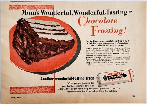 1956 Wrigley's Spearmint Gum Frosting Recipe Advertisement Candy Vintage DWPP23