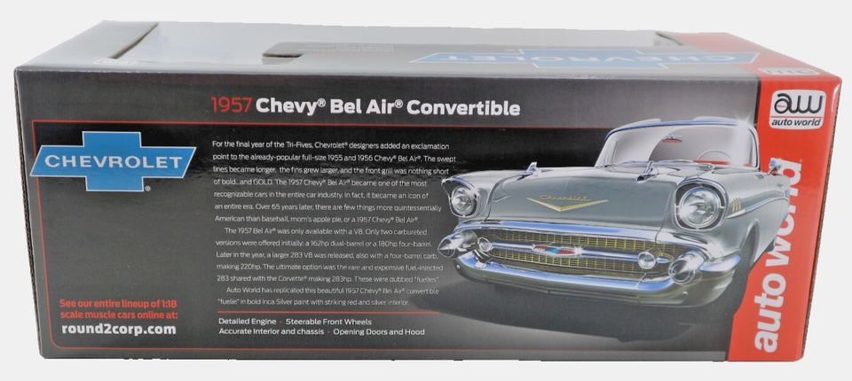 - 1957 Chevy Belair convertible limited edition diecast 1:18 scale silver model