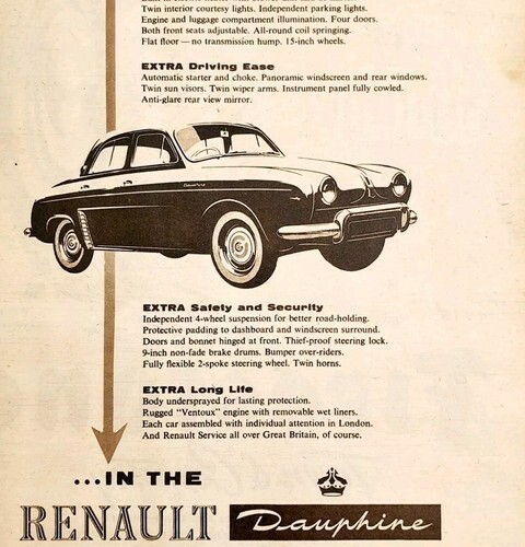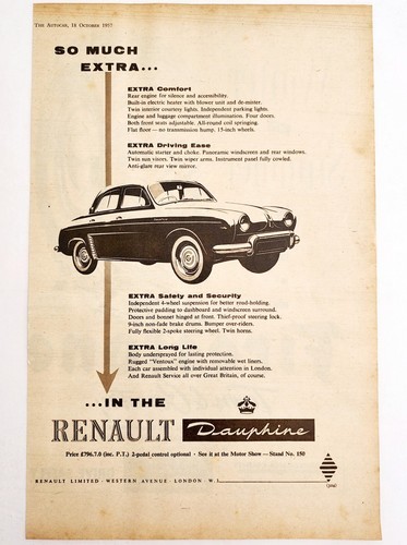 - 1957 Renault Dauphine London Import Advertisement Autocar Automobilia DWPP2