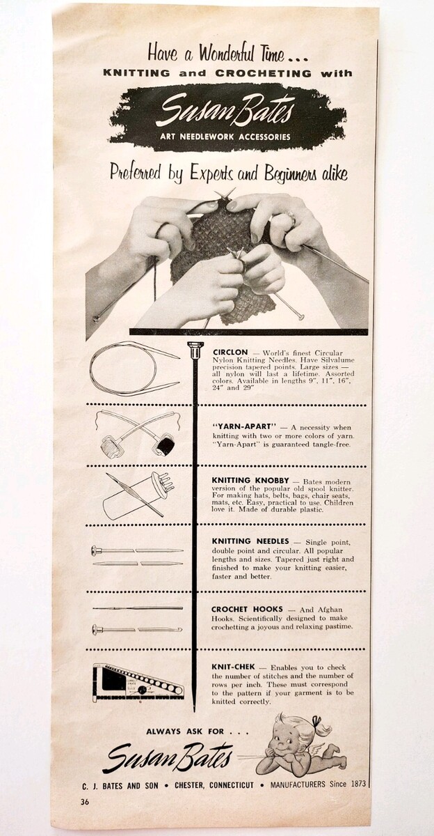 - 1957 Susan Bates Needlework Accessories Advertisement Crafts Sewing Supply DWJJ6