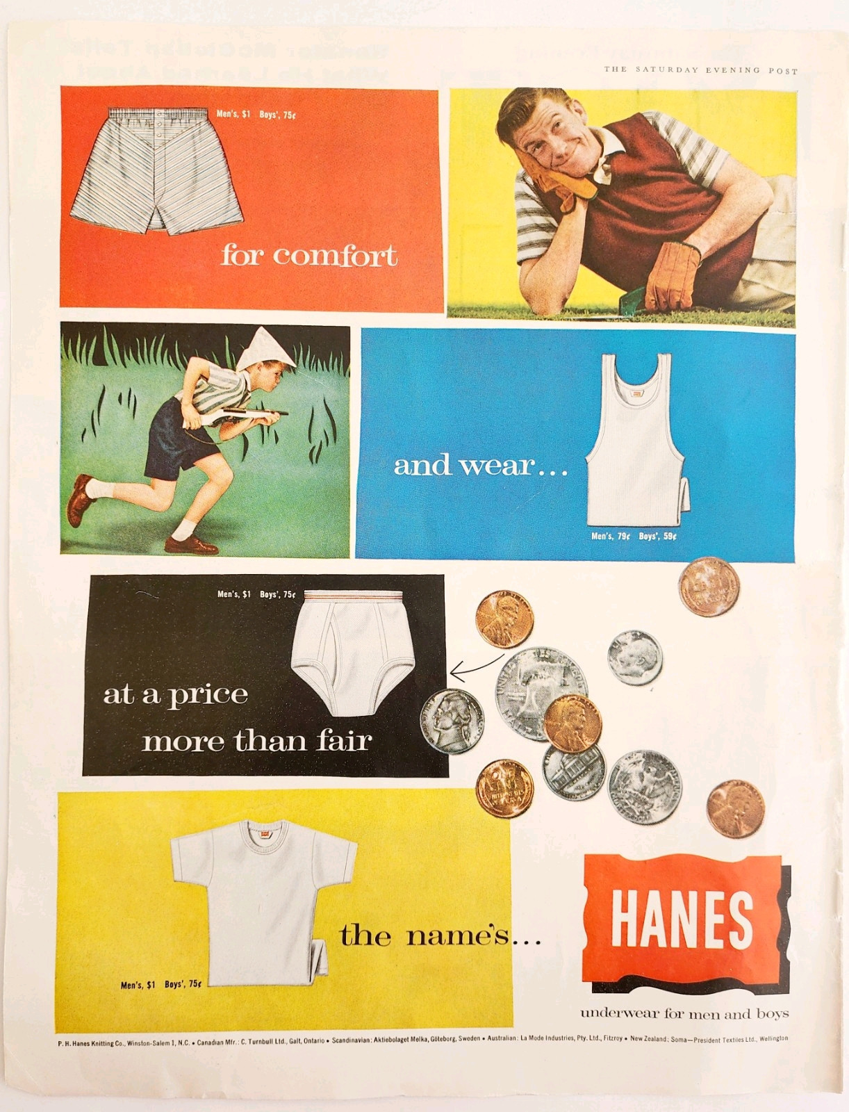 1958 Hanes Underwear For Men And Boys Advertisement Vintage Fashion DWII29