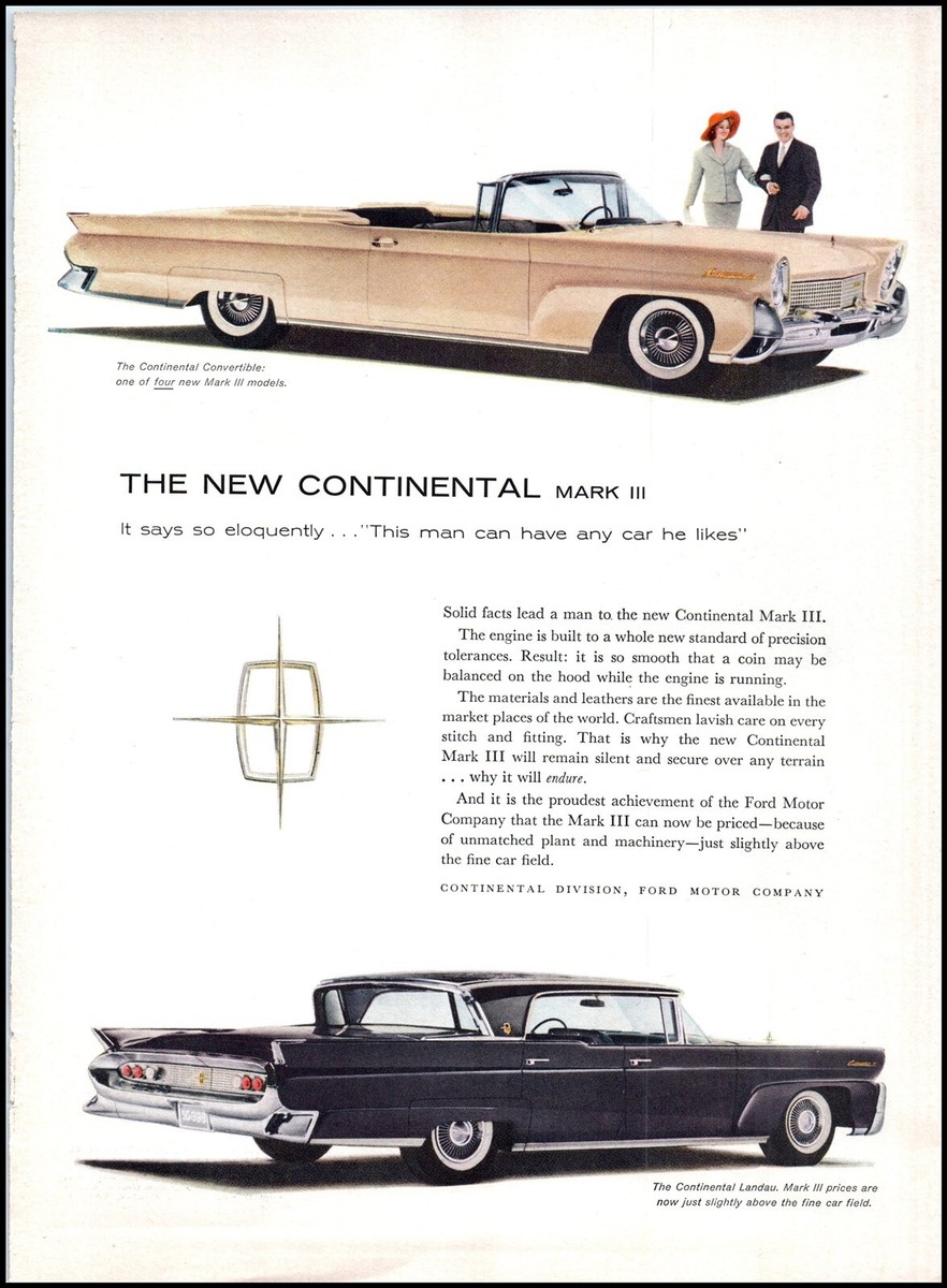 - 1958 Lincoln Continental Mark III Convertible & Landau Automobile PRINT AD BX3