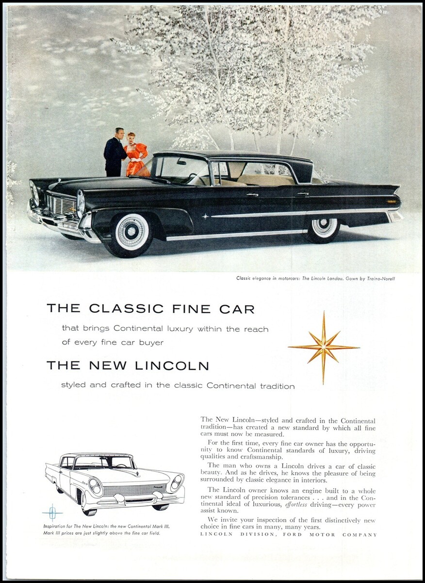- 1958 Lincoln Landau Automobile Black PRINT AD BX3