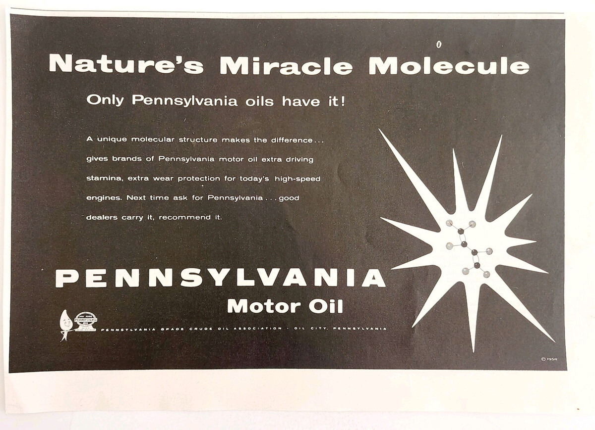 - 1958 Pennsylvania Motor Oil Advertisement Pennzoil Molecule Vintage DWII29