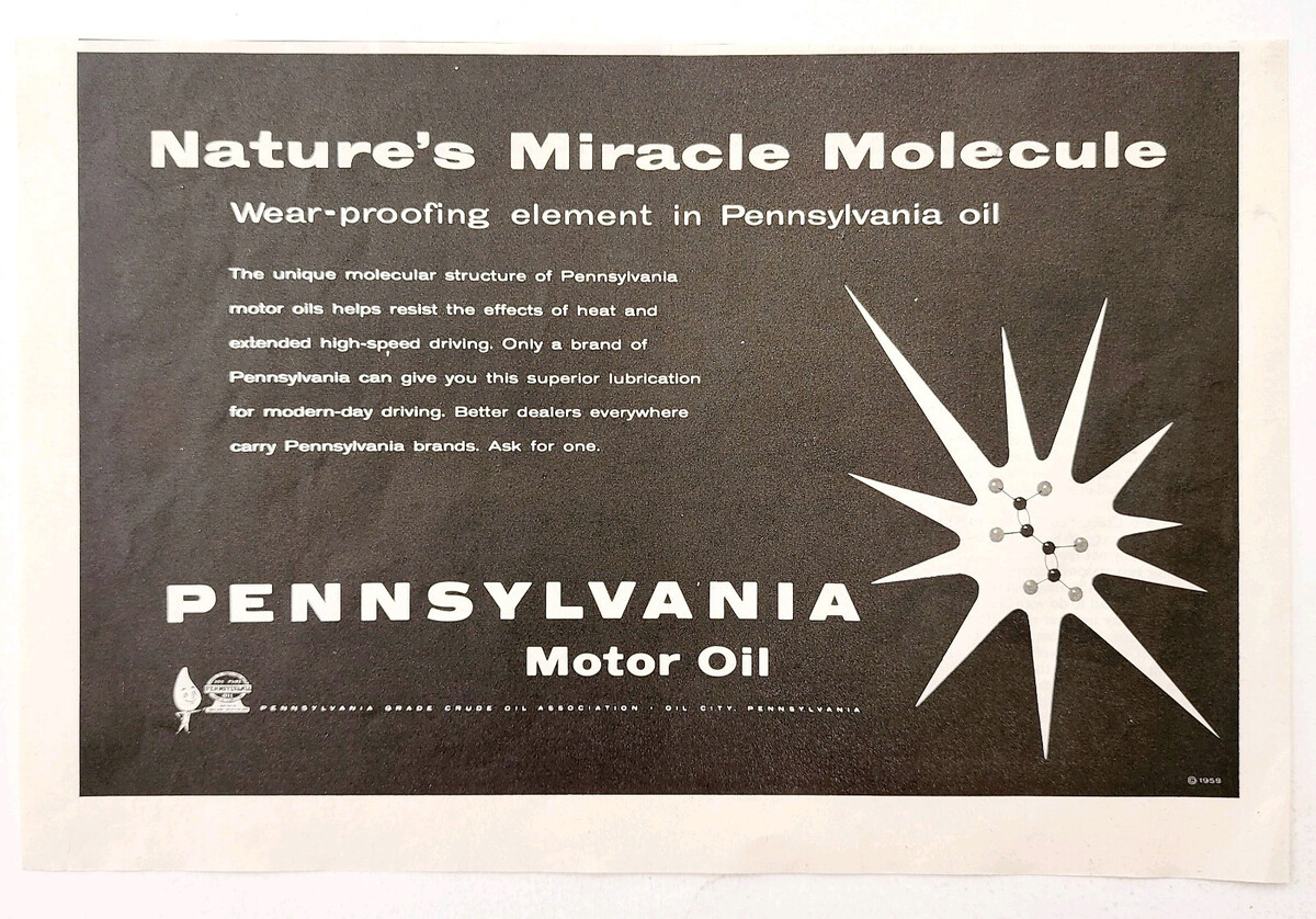 - 1958 Pennsylvania Motor Oil Advertisement Pennzoil Molecule Vintage DWII30