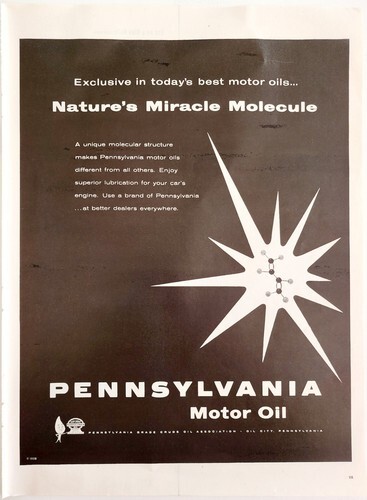 - 1958 Pennsylvania Motor Oil Company Advertisement Gas & Oil Molecules DWII14