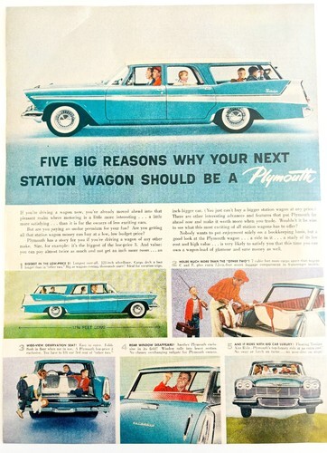 - 1958 Plymouth Station Wagon Car Advertisement Automobilia Life Magazine HM2Y
