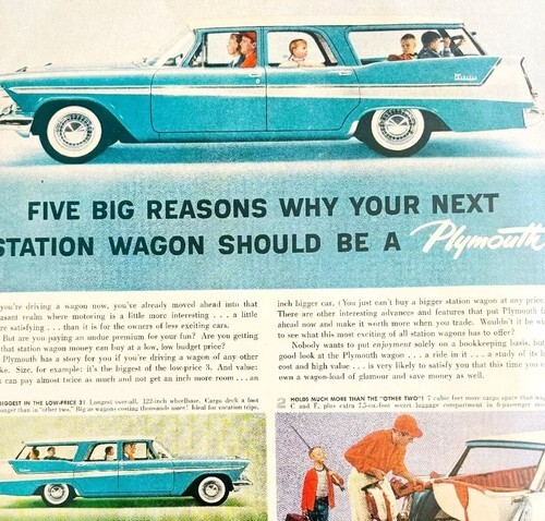 1958 Plymouth Station Wagon Car Advertisement Automobilia Life Magazine HM2Y