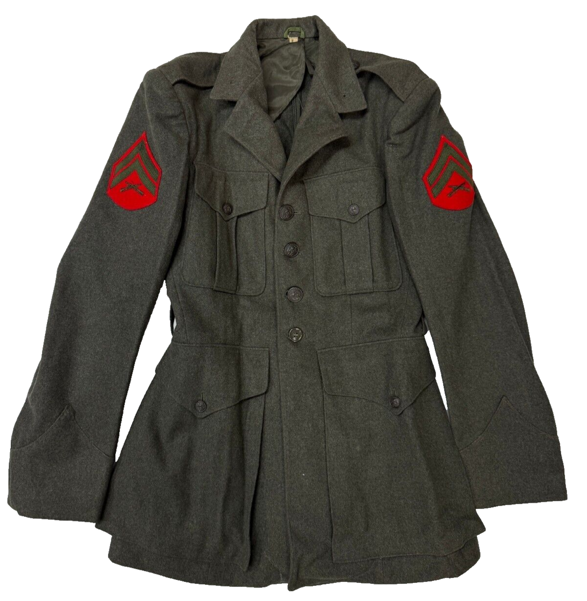 1958 Wool US Marine Dress Uniform Jacket w Rank Patch Size 34R Bannercraft