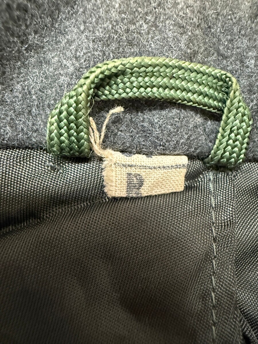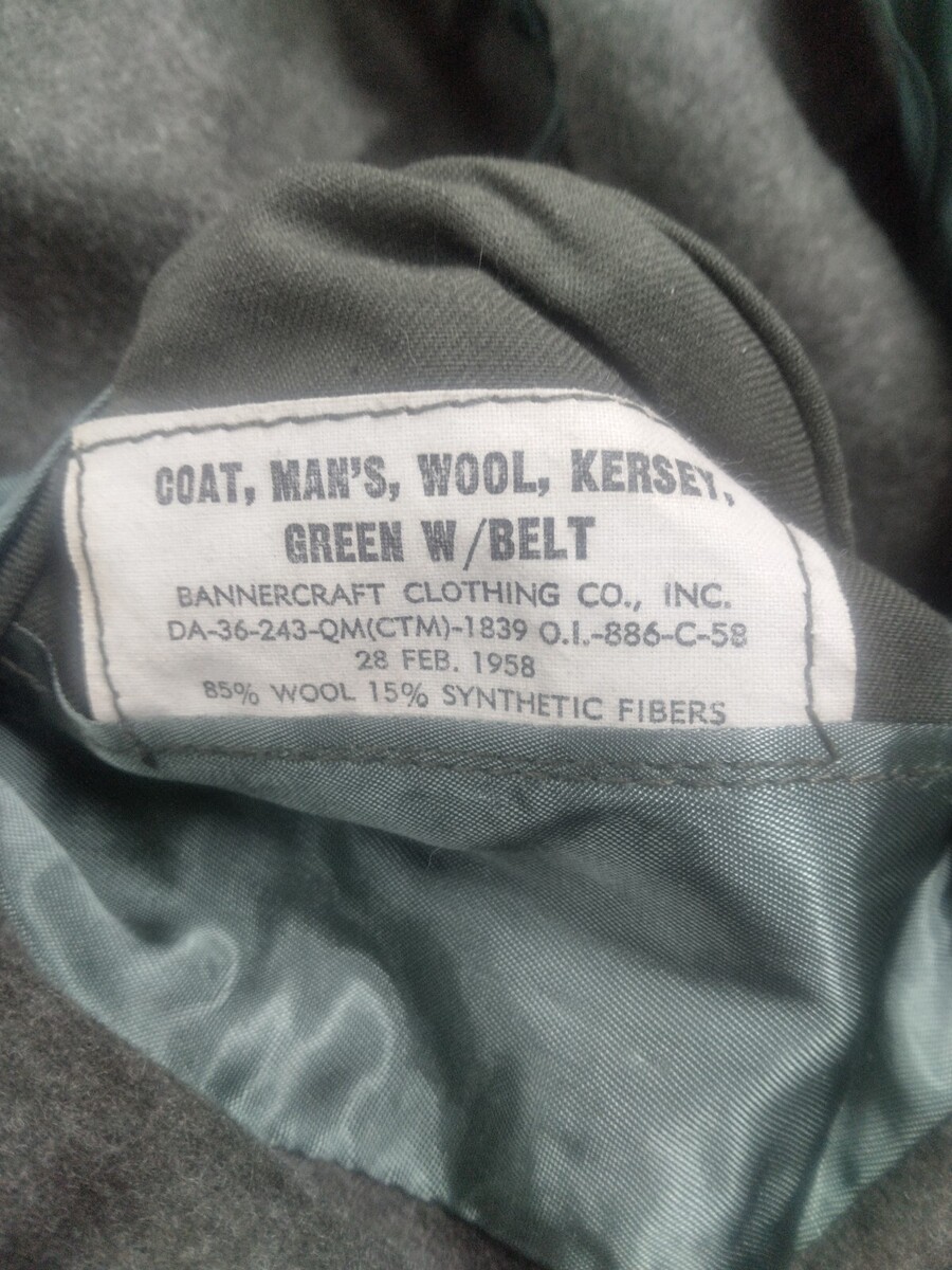 Original 1958 US Marine dress uniform jacket in wool, with a rank patch included. It has a tag stating it is from Bannercraft CO. It is a small size, 34R, and was made in the United States during the time period of the Vietnam war.This militaria collectible item is a piece of history from the United States military during that era.It is in good used condition, but since it was stored, it needs cleaning. There is no moth damage.