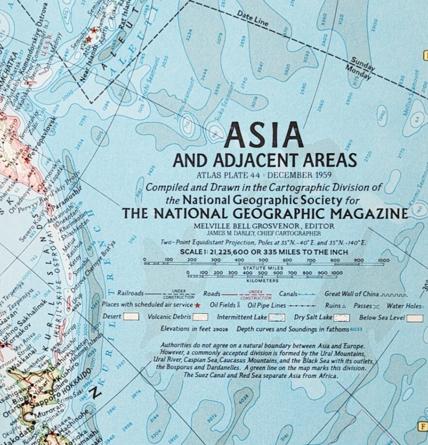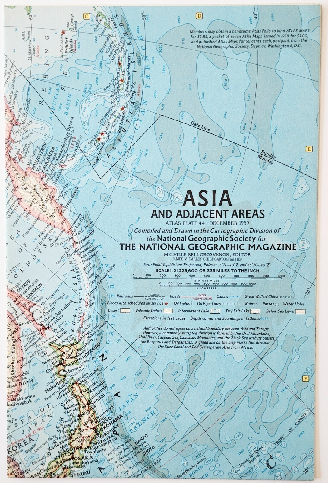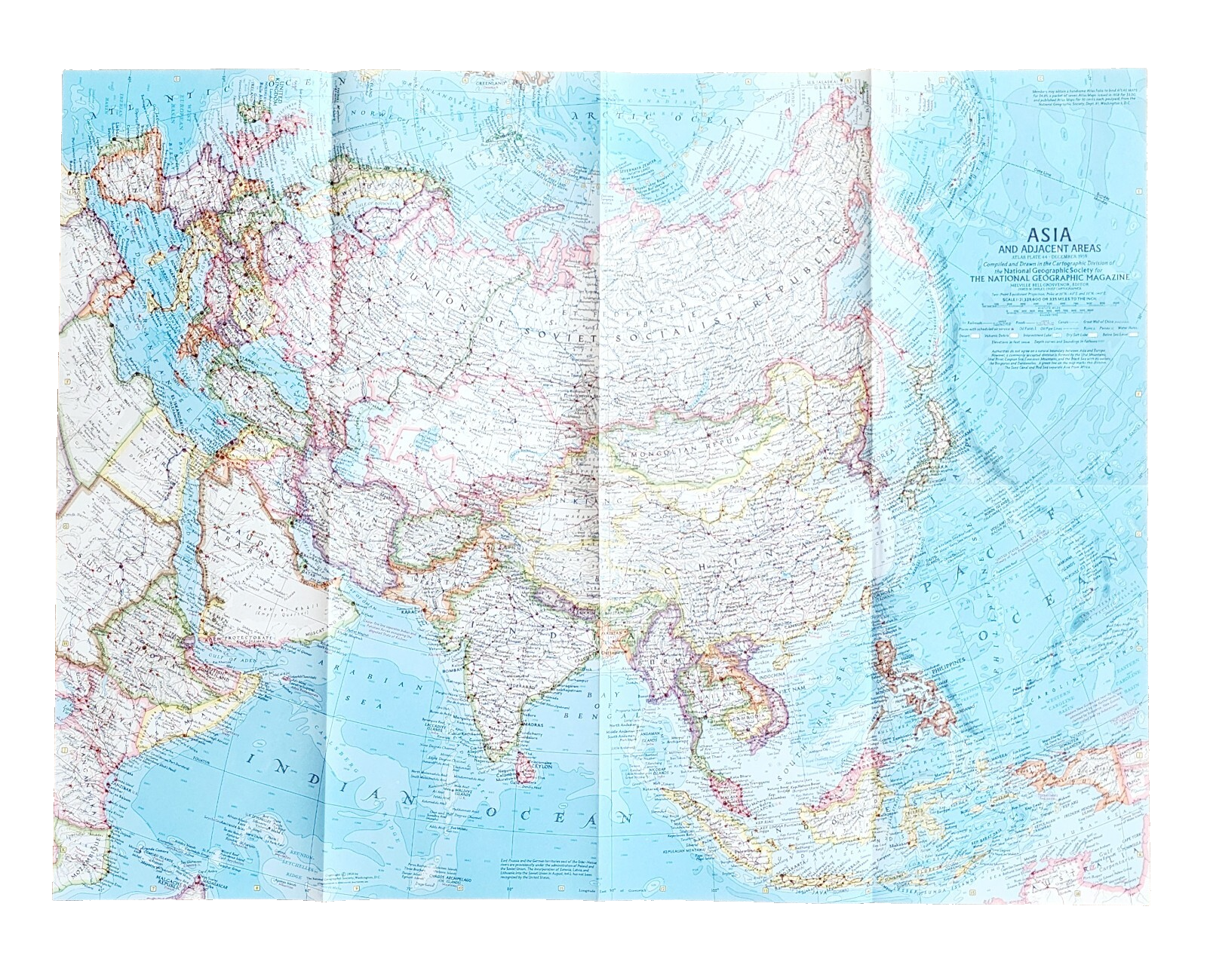 - 1959 Asia And Adjacent Areas Map National Geographic Antique 24.75 x 19" F13G