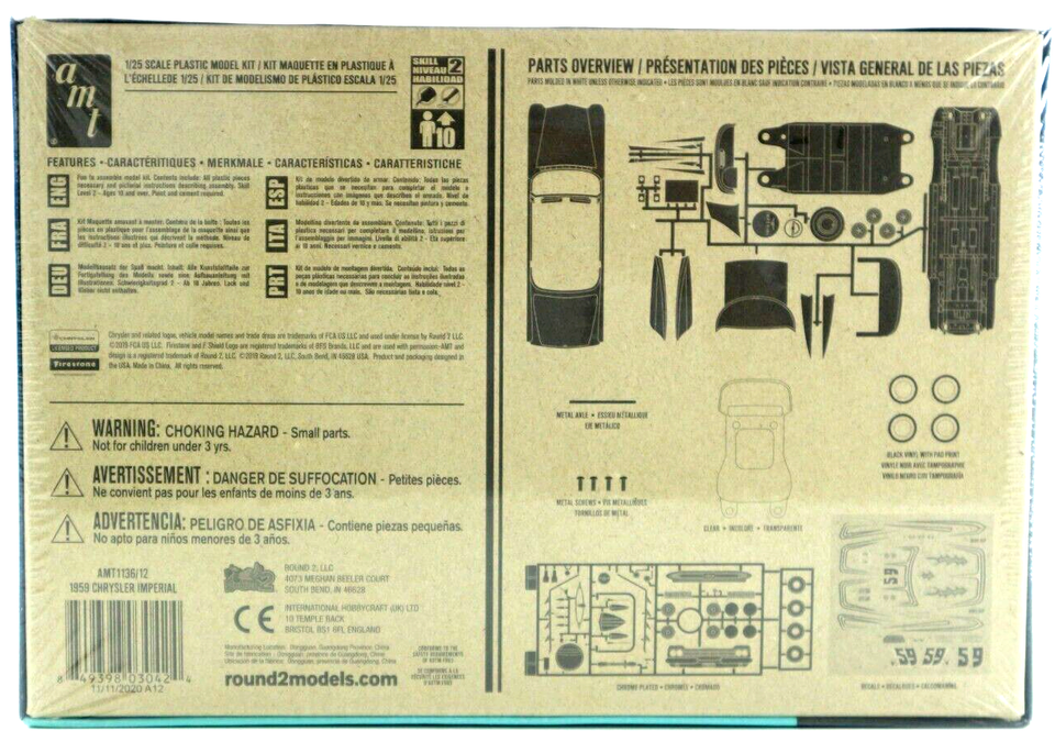 - 1959 Chrysler Imperial Hardtop Customizing Kit 1:25 Scale Authentic Model AMT