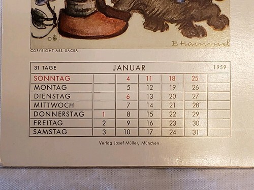 - 1959 Germany Calendar 2026 Hummel Postcard Print Glossy Full Color 12 Month