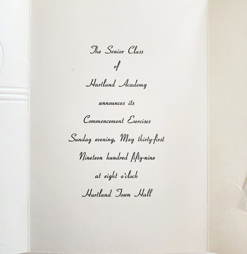 - 1959 Hartland Academy Commencement Exercises Invitation Card Town Hall E83E