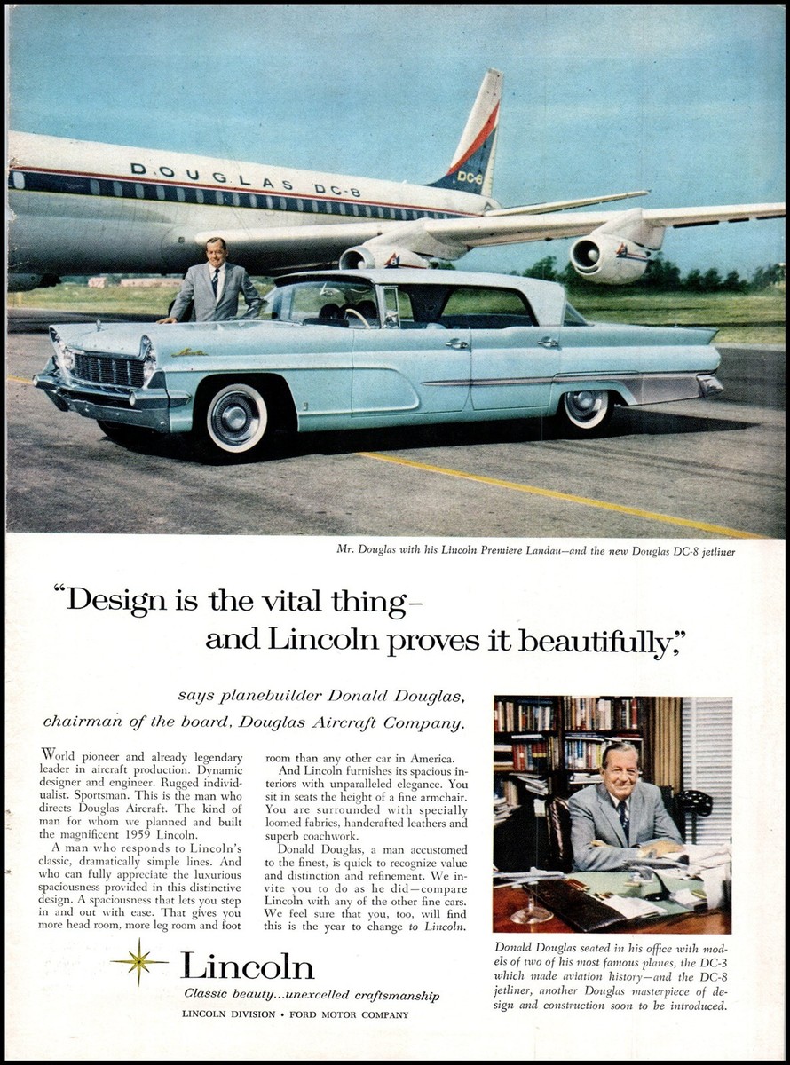 - 1959 Lincoln Premiere Landau PRINT AD Donald Douglas - Douglas Aircraft BX3