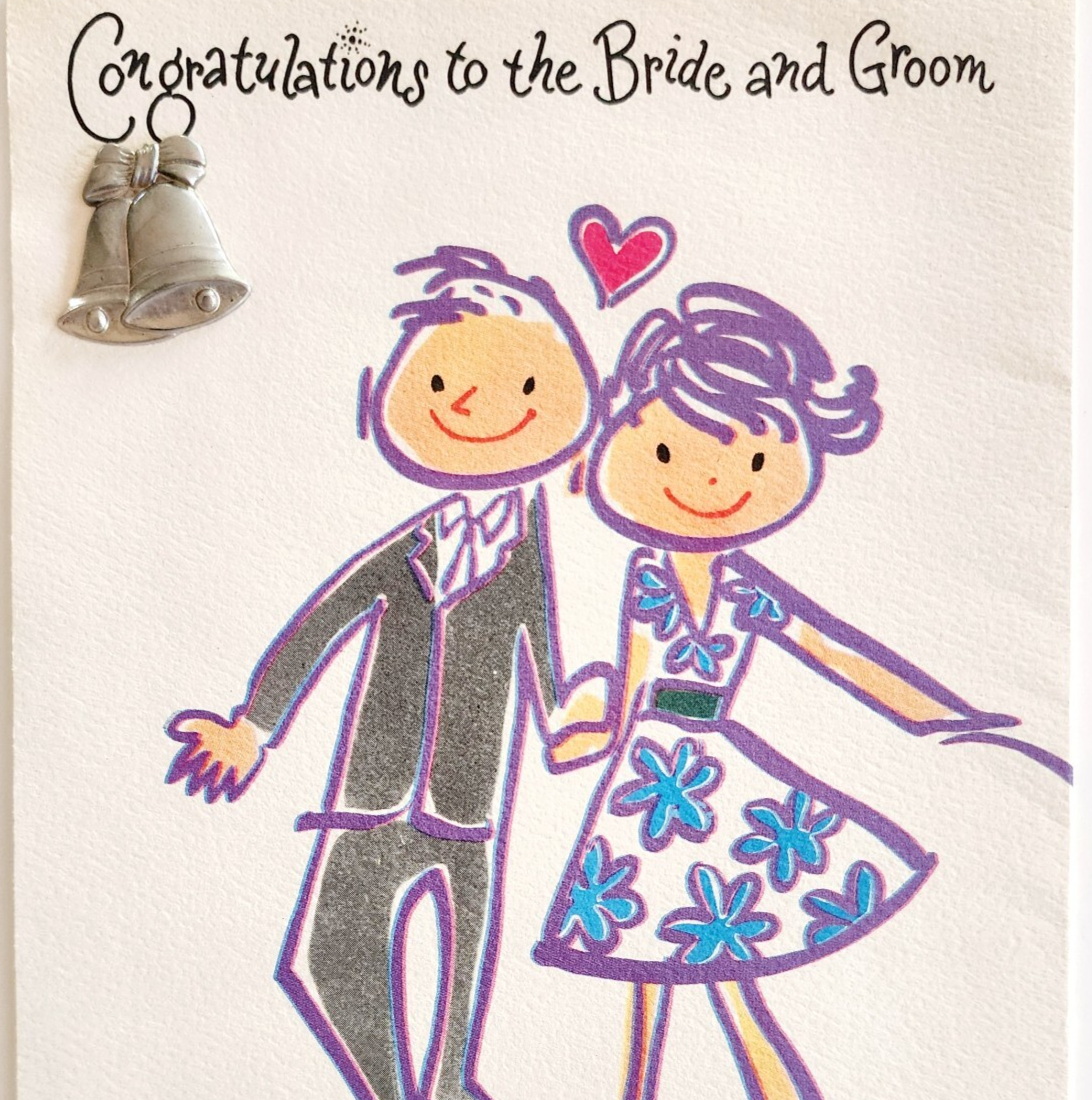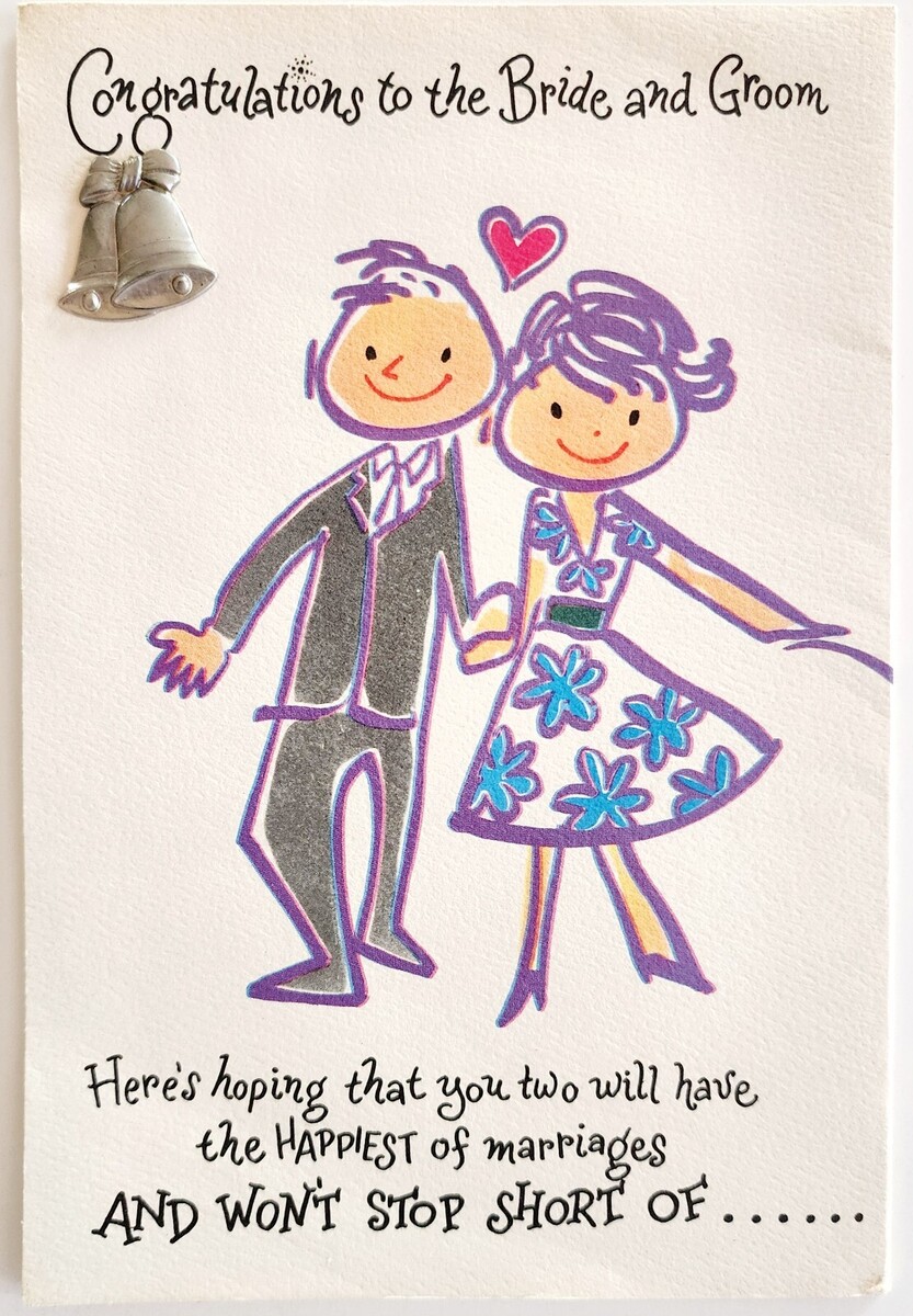 - 1960-70s Congratulations To The Bride And Groom Greeting Card Unused NOS F8D