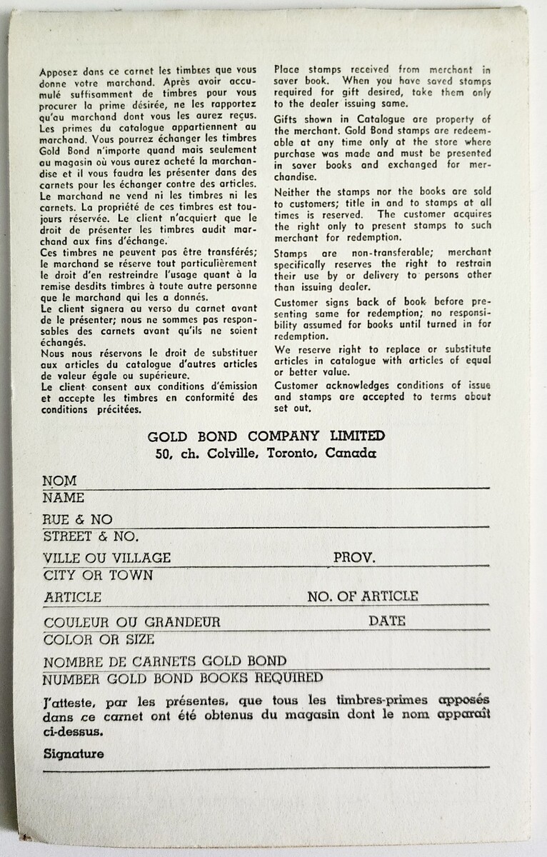- 1960-70s Gold Bond Stamp Book Unused Vintage Canada IGA Toronto Booklet F12