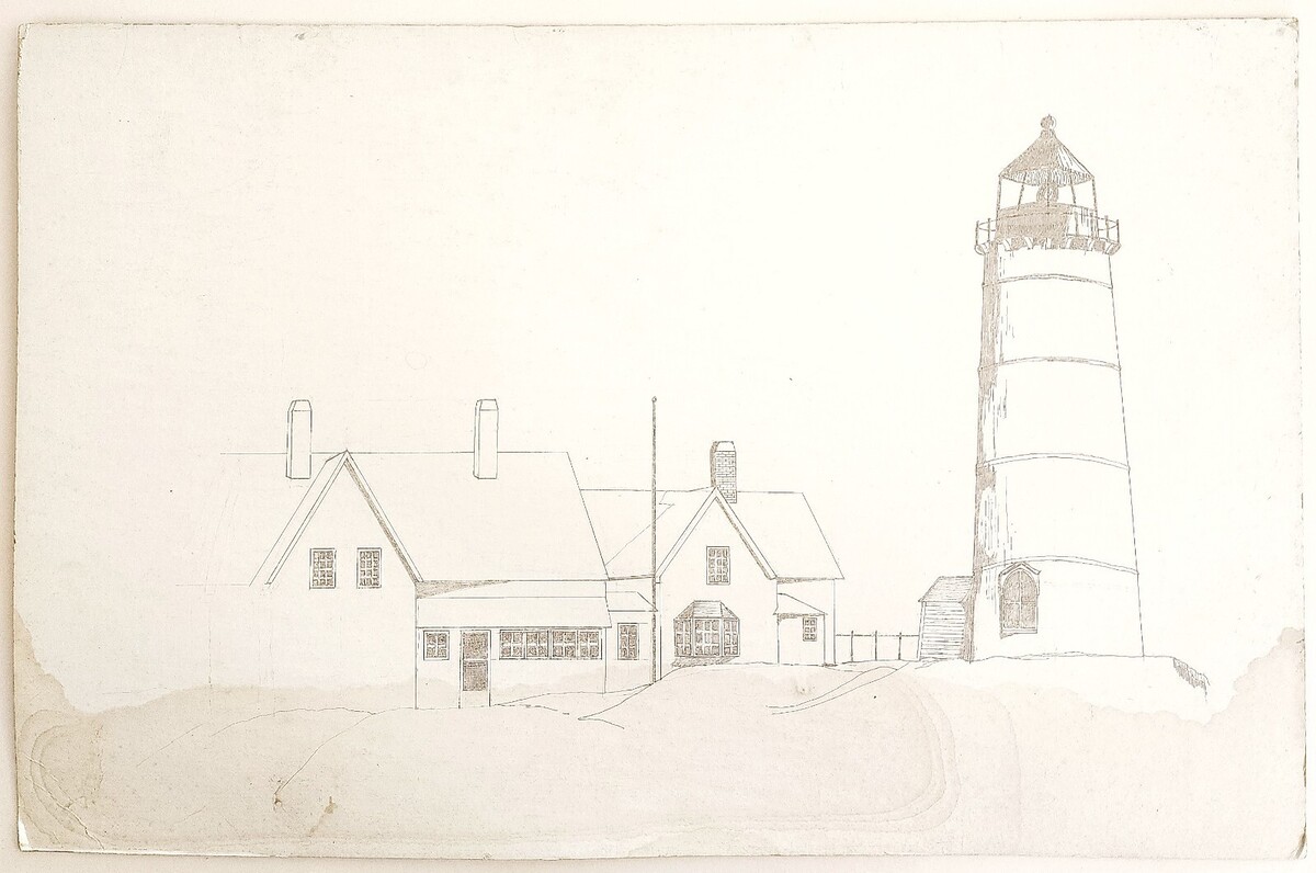 - 1960-70s Original Art Pencil Drawing Maine Lighthouse OOAK Unsigned DWWW14