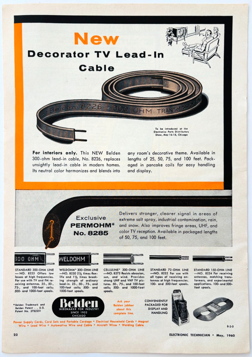 1960 Belden TV Lead Cable Advertisement Vintage Televison Electronics DWU16D