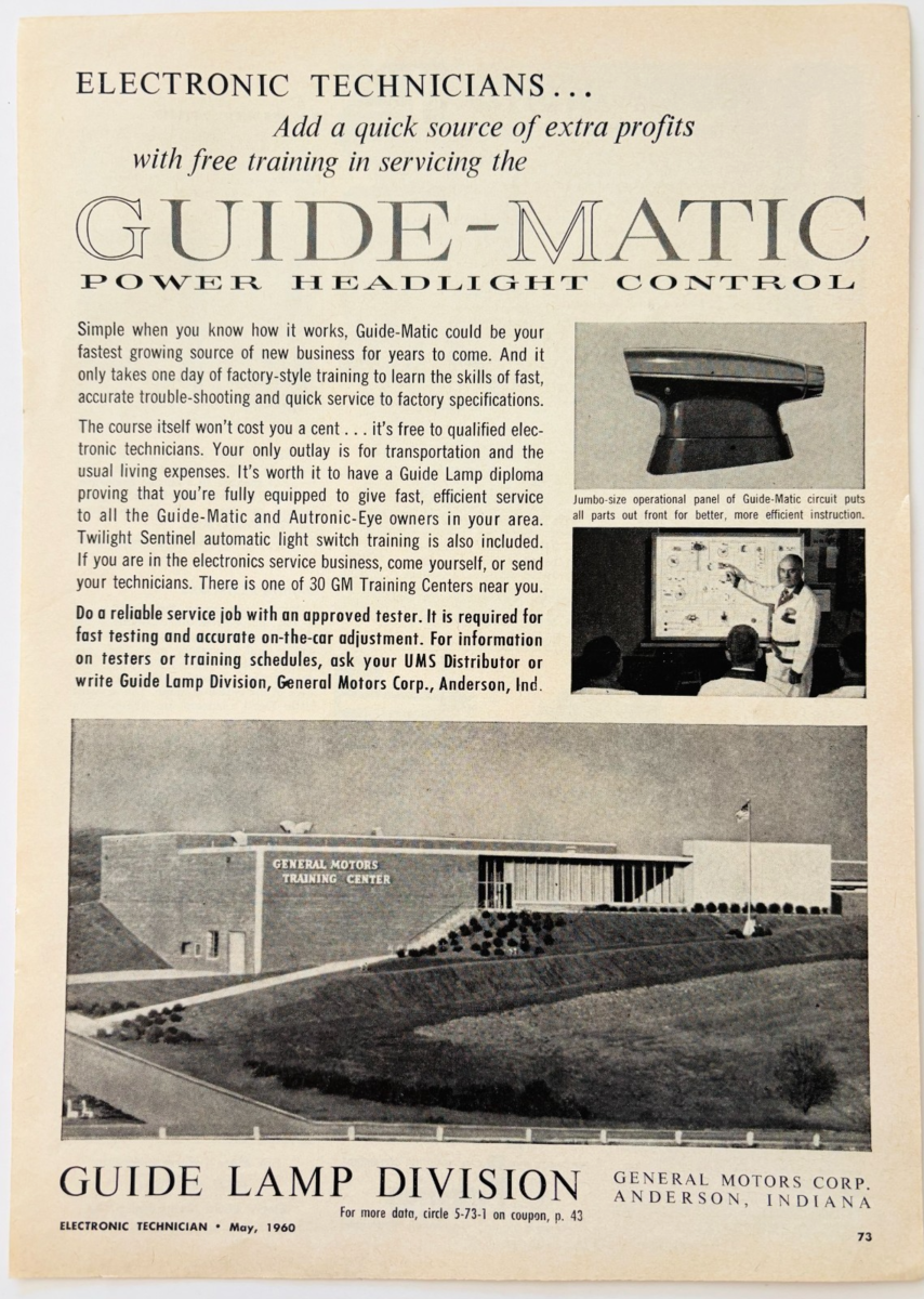 - 1960 General Motors Training Center Advertisement Guide Lamp Vintage DWU16D