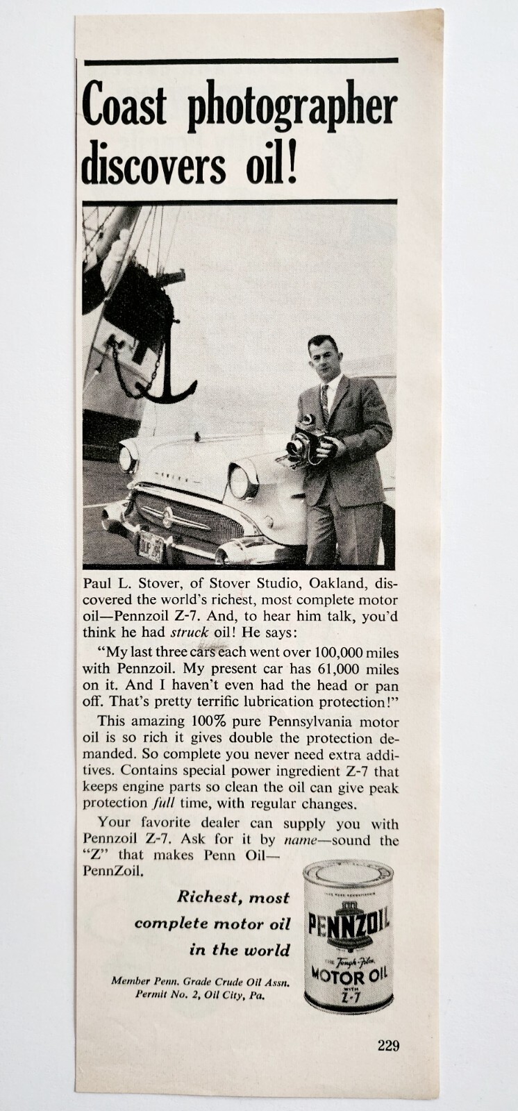 1960 Pennzoil Motor Oil Paul Stover Advertisement Automobilia Vintage DWF26