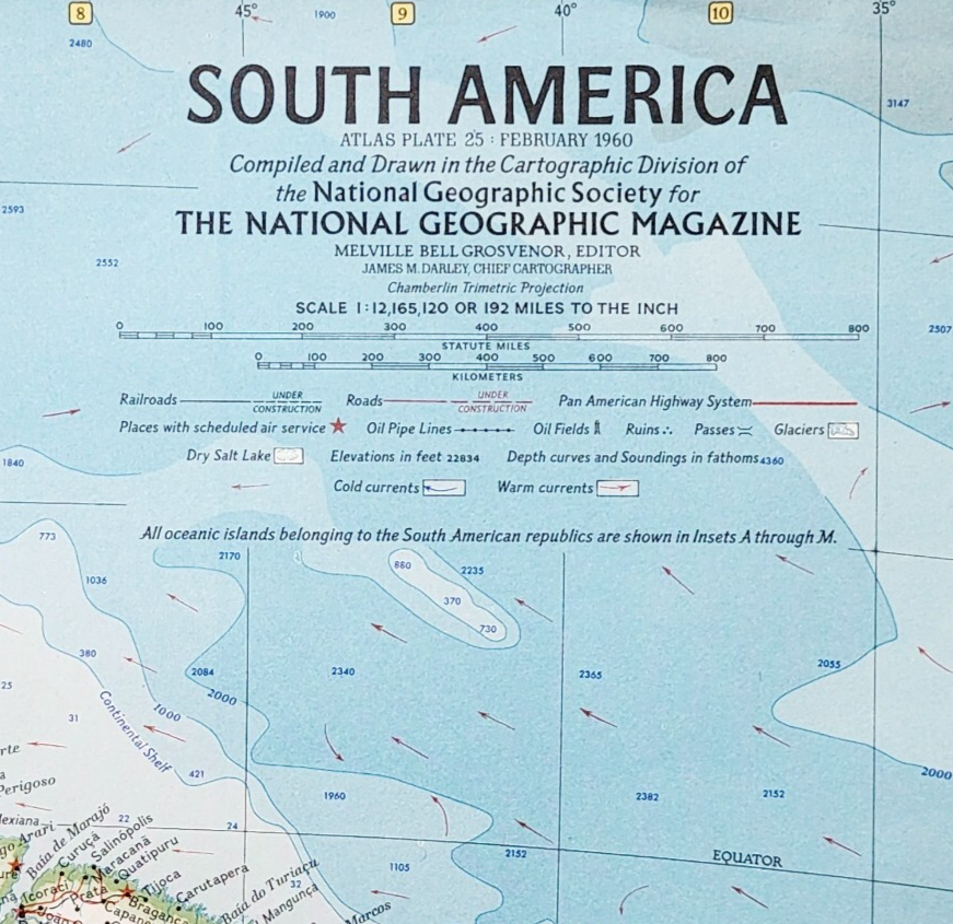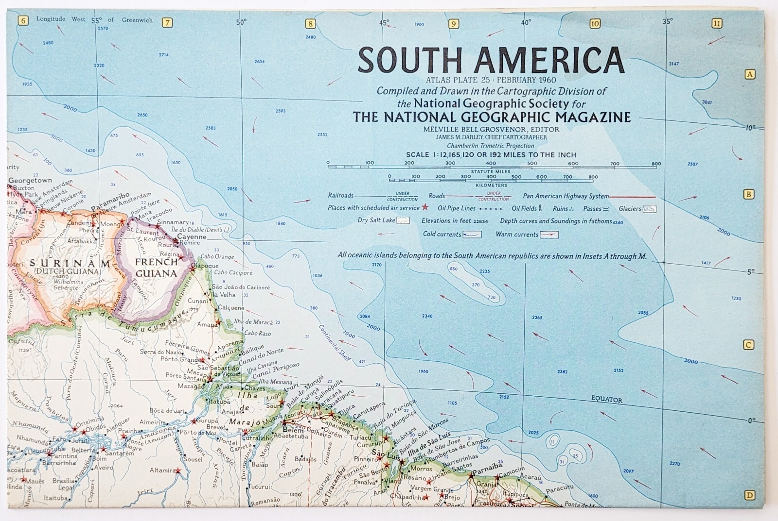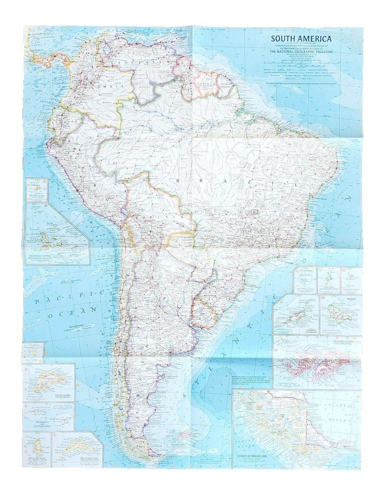 - 1960 South America Map National Geographic Antique Continent 24.75 x 19" F13G
