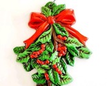 1960s Antique Christmas Ornament Ceramic Hand Painted Mistletoe Holly 1 E90C