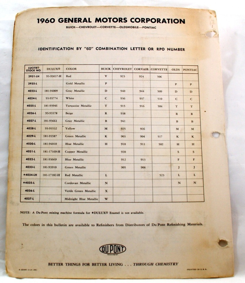 1961 Chevrolet Corvette Truck Buick Cadillac Oldsmobile Pontiac Paint Chips 631