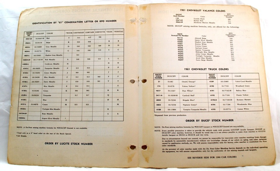 - 1961 Chevrolet Corvette Truck Buick Cadillac Oldsmobile Pontiac Paint Chips 631