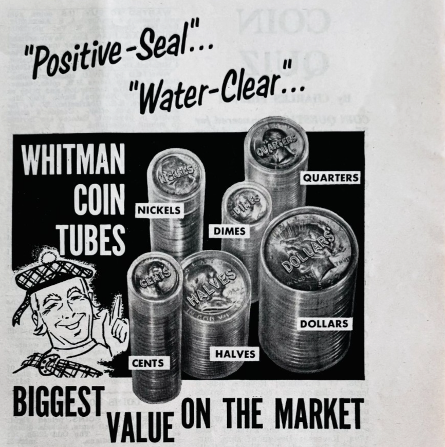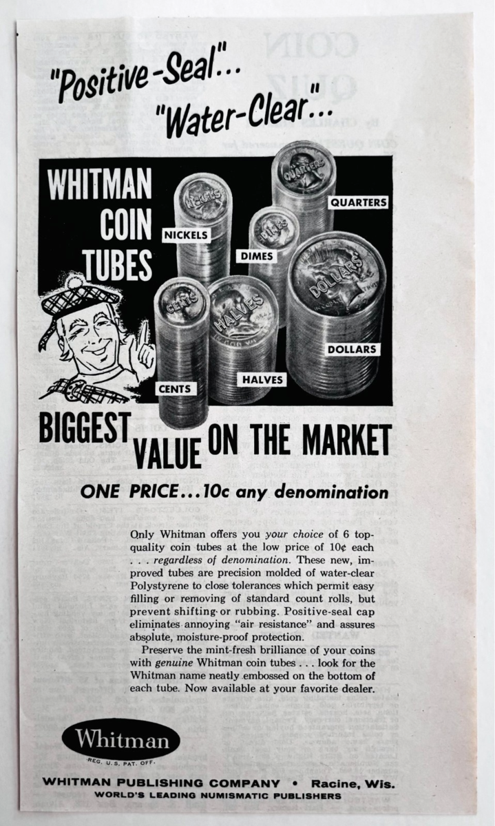 - 1961 Whitman Coin Tubes Advertisement Numismatic Supply Wisconsin DWV10