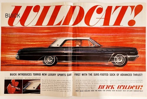 - 1962 Buick Wildcat V8 Advertisement Automobilia Centerfold General Motors HM2M