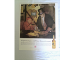 An original trimmed one page 10 1/4"x13" color illustrated ad from 1962 for White Horse Cellar Blended Scotch Whiskey.