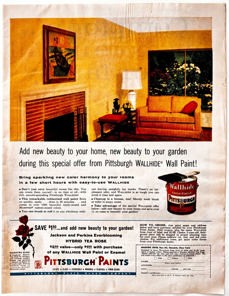 - 1962 Pittsburgh Paints PPG Advertisement Wallhide Satin Finish Paint VTG DWXX6