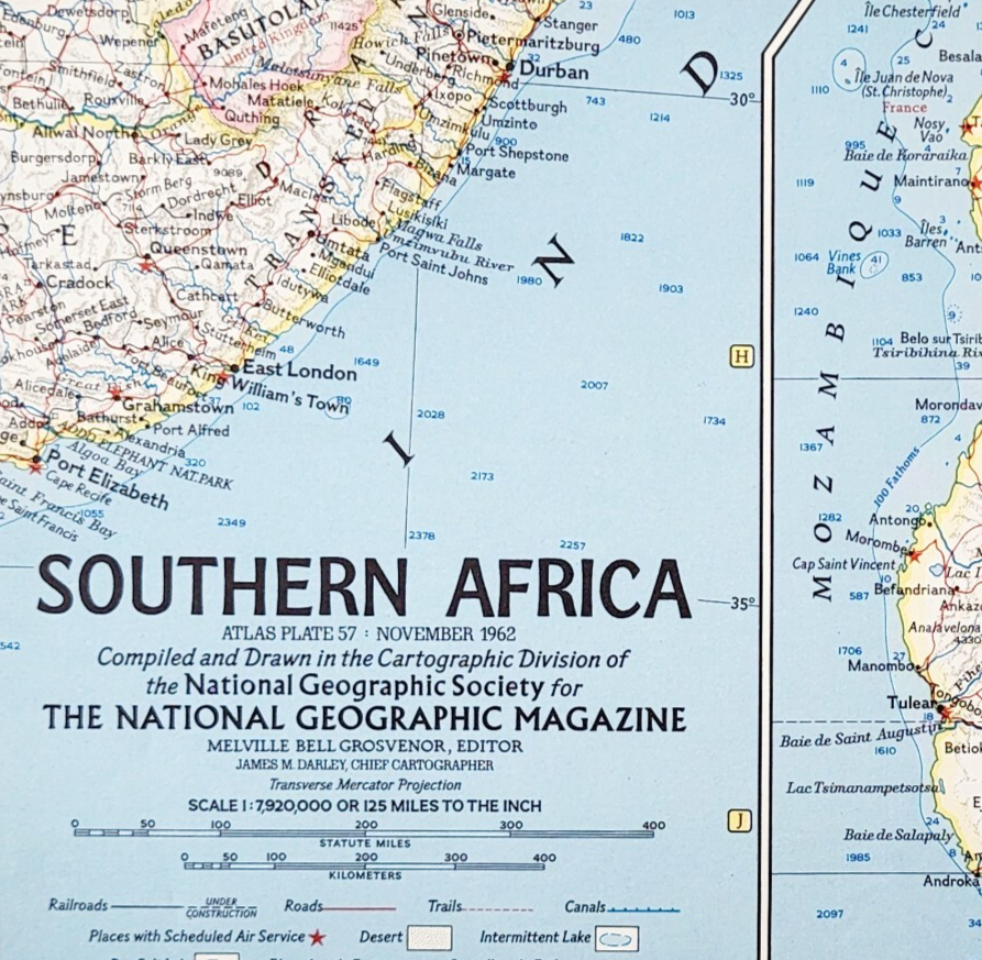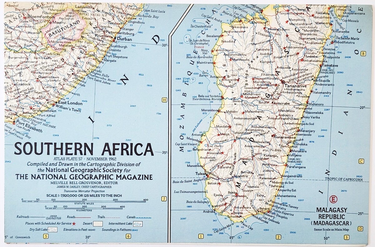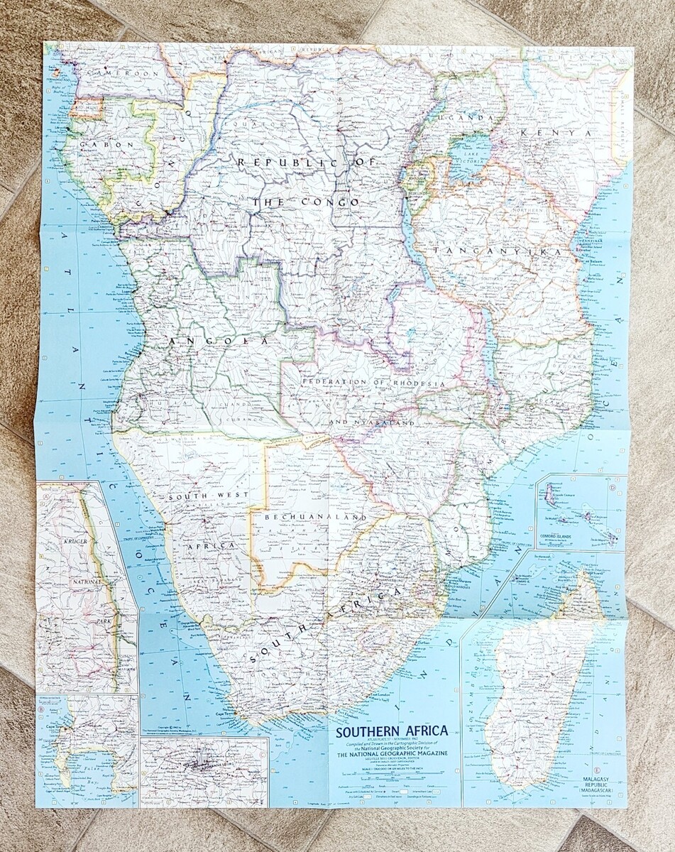 - 1962 Southern Africa Madagascar Map National Geographic 24.75 x 19" F13G