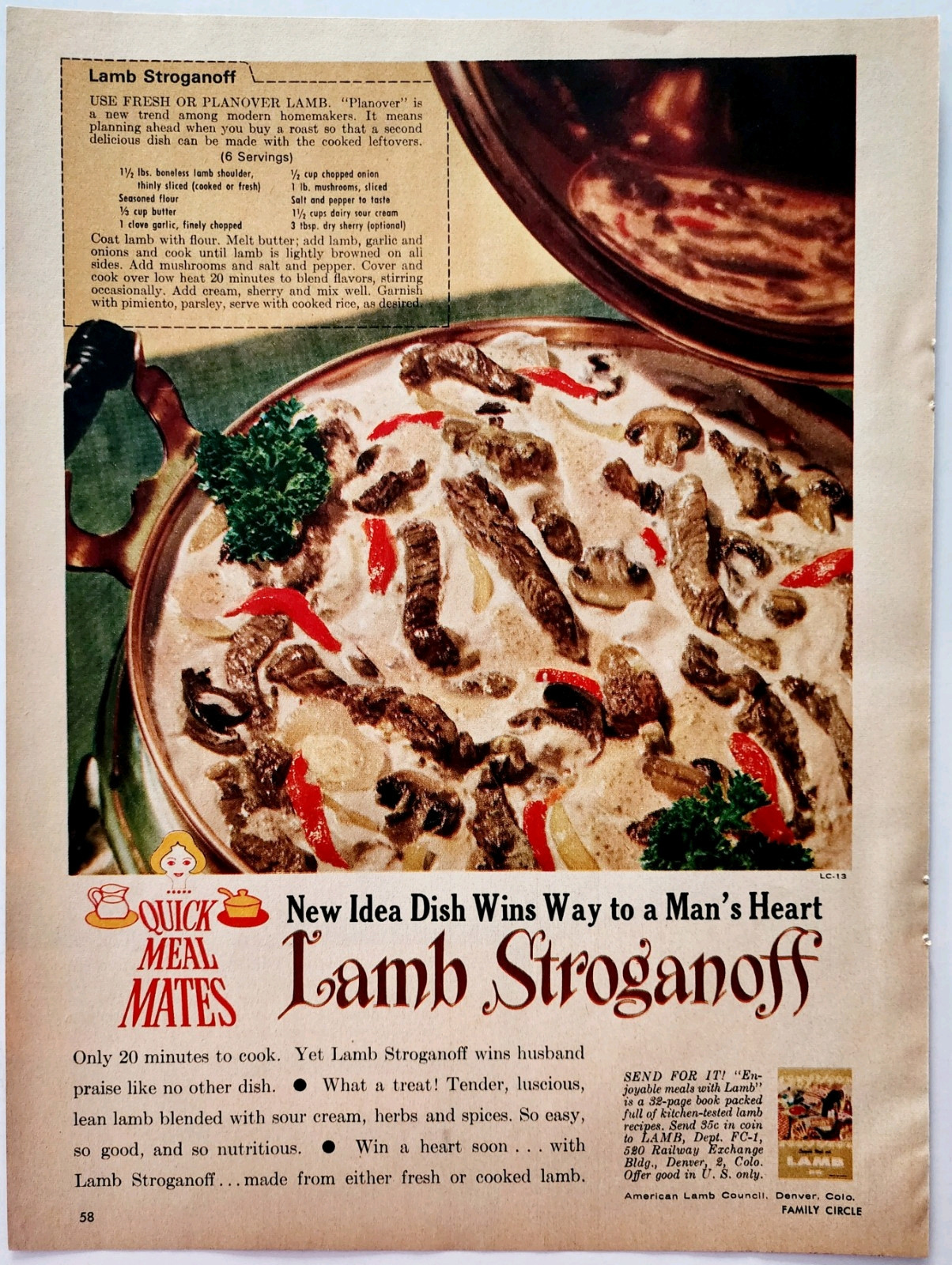 - 1963 American Lamb Council Advertisement Lamb Stroganoff Recipe Vintage DWQQ14