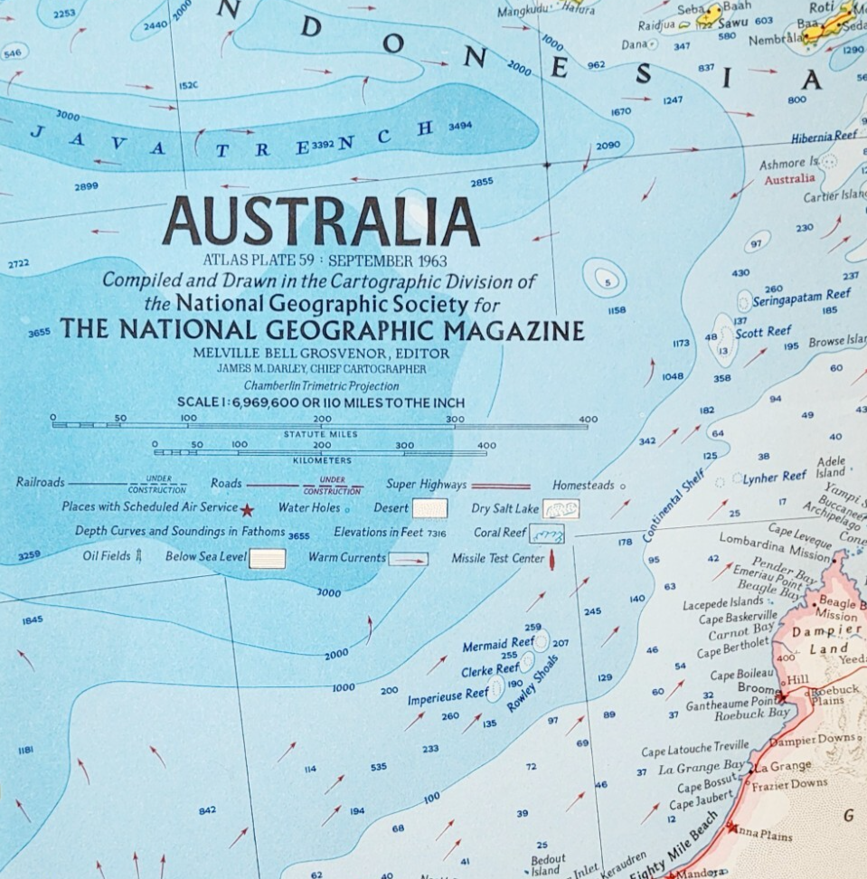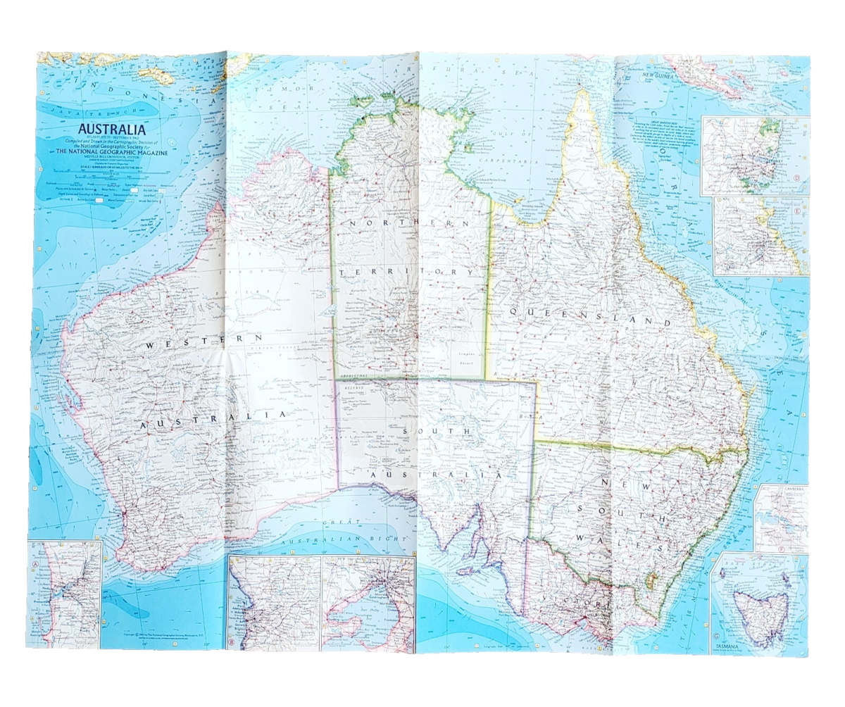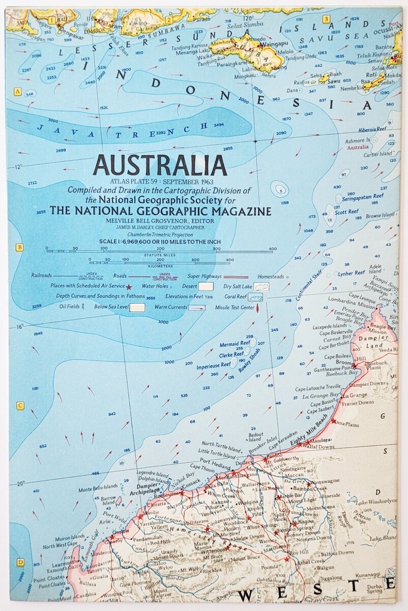 - 1963 Australia Continent Map National Geographic Antique 24.75 x 19" F13H