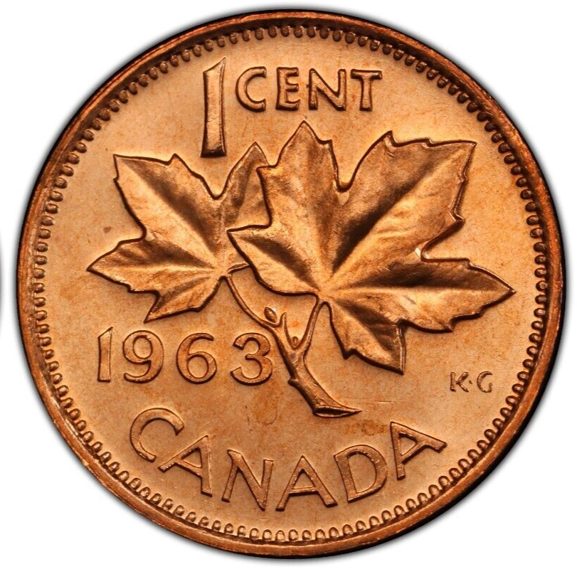 This product is a 1963 Canadian cents, all in red and uncirculated condition. Made of copper with a fineness of 0.98, these small cents are from Canada and are uncertified. Perfect for collectors or those looking to add a piece of Canadian history to their coin collection, these 1963 Canadian cents are a unique and valuable addition to any collection.