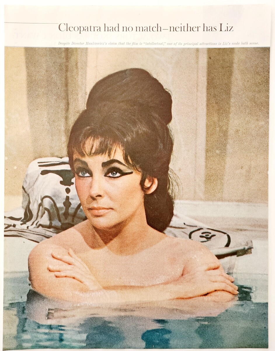 - 1963 Elizabeth Taylor As Cleopatra Movie Post Magazine Page Bath Scene DWJJ14