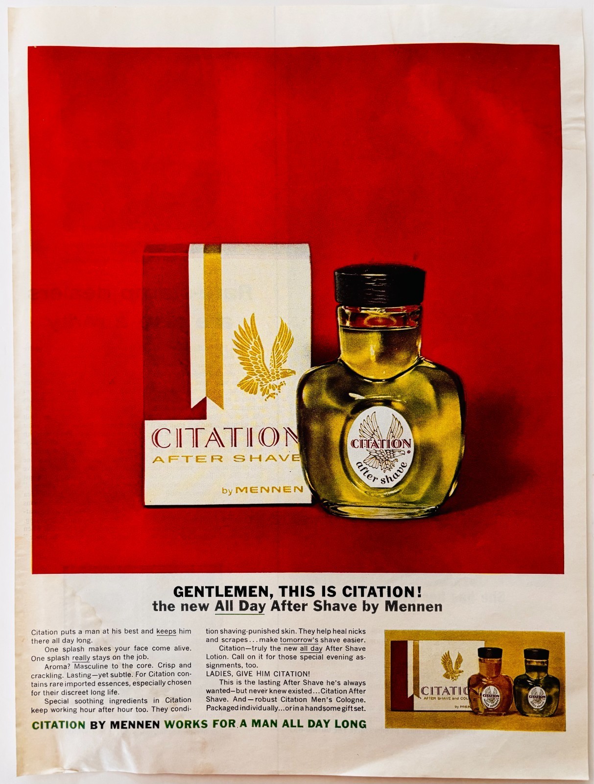 - 1963 Mennen Citation Advertisement Vintage Men's After Shave Cologne DWXX2