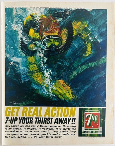 - 1964 7up Get Real Action Soda Pop Advertisement Scuba Diver Beverage DWII20